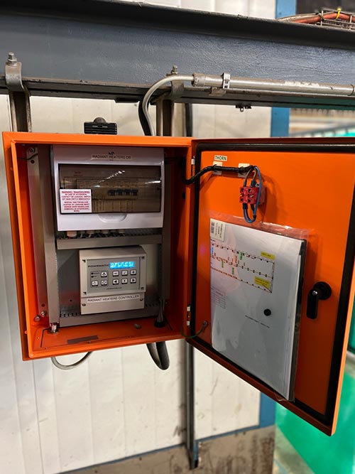 - The heaters are controlled with a temperature bulb and MC200 smart controller enabling operational effectiveness and energy efficiency.